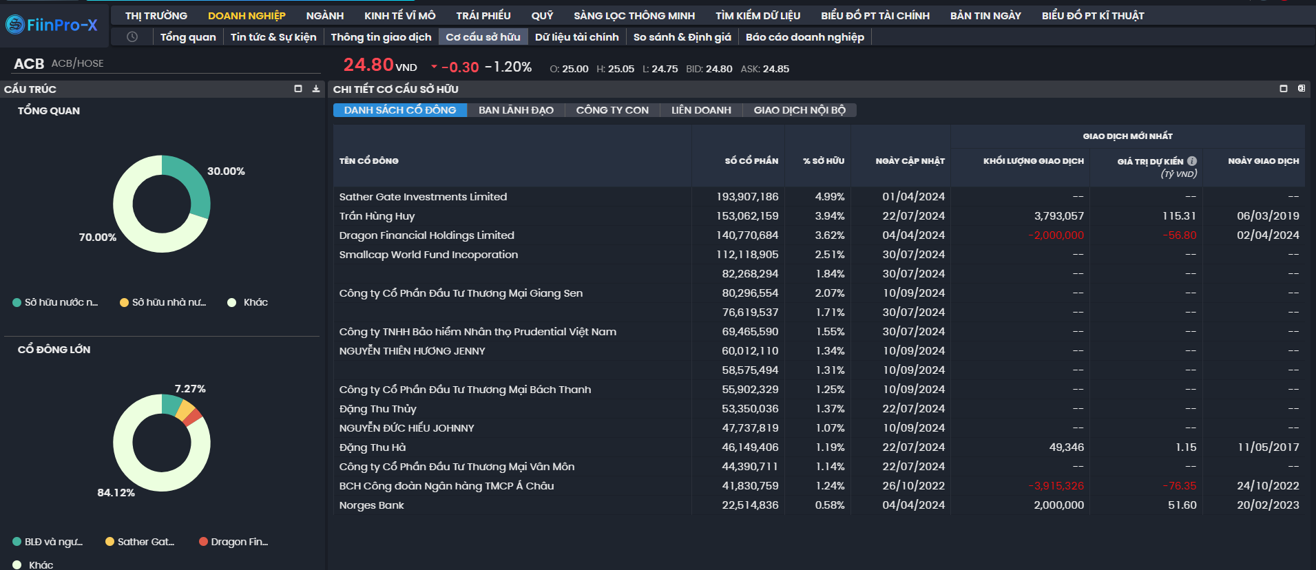 Danh sách cổ đông sở hữu thu thập theo các Tài liệu cổ đông (Báo cáo thường niên, Báo cáo quản trị) do Doanh nghiệp công bố, theo Quy định chỉ công bố Cổ đông lớn (trên 5%).