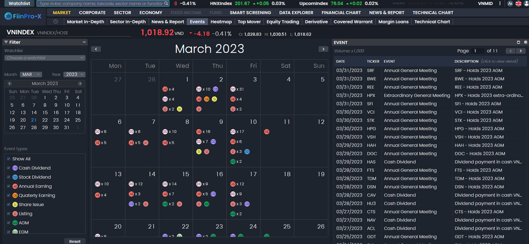 Compilation of all events of corporations, allowing filtering news and events according to each user's watchlist.&#x20;