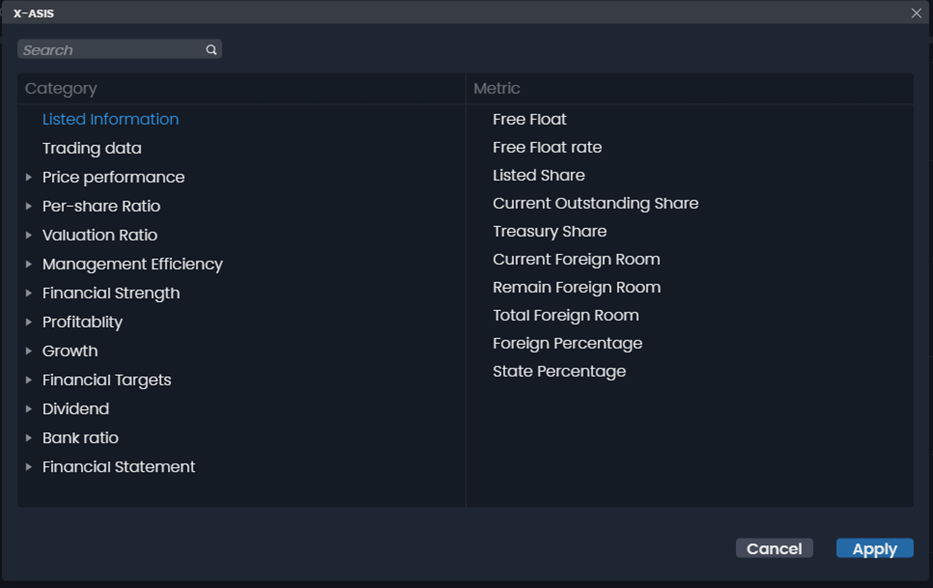 The significance of **the time series chart allows users to see the correlation between two indicators of a company** or sector group not only at a certain point in time but also including **a series of past time frames**. The illustration will help users analyze the characteristics of a company more clearly, based on a series of past time frames.