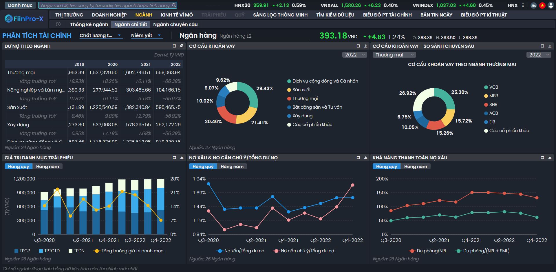 FiinPro-X phân tích năng lực tài chính của tất cả các ngành thông qua các bộ chỉ tiêu khác nhau.&#x20;