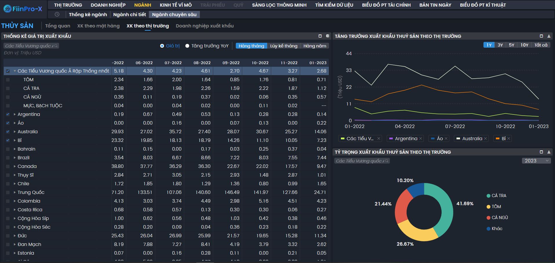 Cung cấp dữ liệu dữ liệu XK thủy sản theo từng thị trường khác nhau.