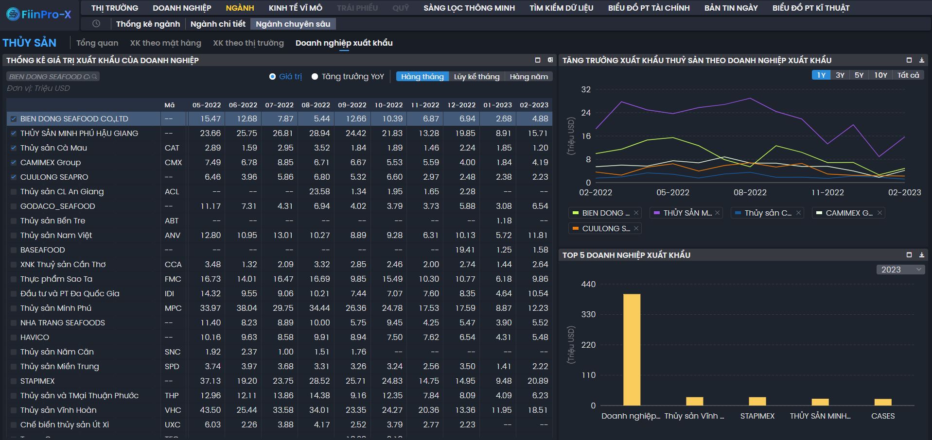 Cung cấp dữ liệu theo từng Doanh nghiệp XK thủy sản.
